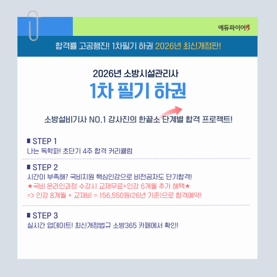 제1편 소방관련법령 알짜배기 Chapter 01 소방기본법 Chapter 02 소방시설 설치 및 관리에 관한 법률 (약칭:소방시설법) Chapter 03 화재의 예방 및 안전관리에 관한 법률 (약칭:화재예방법) Chapter 04 소방시설공사업법 Chapter 05 위험물안전관리법 Chapter 06 다중이용업소의 안전관리에 관한 특별법 (약칭:다중이용업소법) 제2편 위험물의 성질과 상태 및 시설기준 <위험물의 성질과 상태> Chapter 01 제1류 위험물 Chapter 02 제2류 위험물 Chapter 03 제3류 위험물 Chapter 04 제4류 위험물 Chapter 05 제5류 위험물 Chapter 06 제6류 위험물 Chapter 07 위험물안전관리법 <제조소등의 위치·구조 및 설비의 기준> Chapter 08 안전거리 Chapter 09 보유공지 Chapter 10 표지 및 게시판 Chapter 11 제조소 Chapter 12 옥내저장소 Chapter 13 옥외탱크저장소 Chapter 14 옥내탱크저장소 Chapter 15 지하탱크저장소 Chapter 16 간이탱크저장소 Chapter 17 이동탱크저장소 Chapter 18 옥외저장소 Chapter 19 암반탱크저장소 Chapter 20 주유취급소 Chapter 21 판매취급소 Chapter 22 이송취급소 Chapter 23 일반취급소 Chapter 24 위험물의 저장 및 취급에 관한 기준 Chapter 25 위험물의 운반에 관한 기준 Chapter 26 소화설비, 경보설비 및 피난설비의 기준 제3편 소방시설의 구조원리 <전기편> Chapter 01 경보설비 Chapter 02 피난구조설비 Chapter 03 소화활동설비 Chapter 04 기타 소방전기설비 등 <기계편> Chapter 05 수계 소화설비 Chapter 06 가스계 소화설비 Chapter 07 피난구조설비 Chapter 08 소화용수설비 Chapter 09 소화활동설비 Chapter 10 기타 화재안전기준